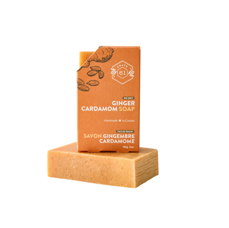 Energize your skin with the spicy warmth of ginger and the exotic sweetness of cardamom. Handcrafted in Canada using 100% plant-based ingredients, this cold-processed soap offers a rich, bubbly lather that deeply nourishes, leaving your skin feeling soft and refreshed. The combination of shea butter, olive oil, and avocado oil hydrates and revitalizes, while the bold, aromatic blend awakens your senses. Packaged in an eco-friendly FSC-certified paperboard box, this soap is a pure indulgence free from synthetic ingredients and artificial dyes.
