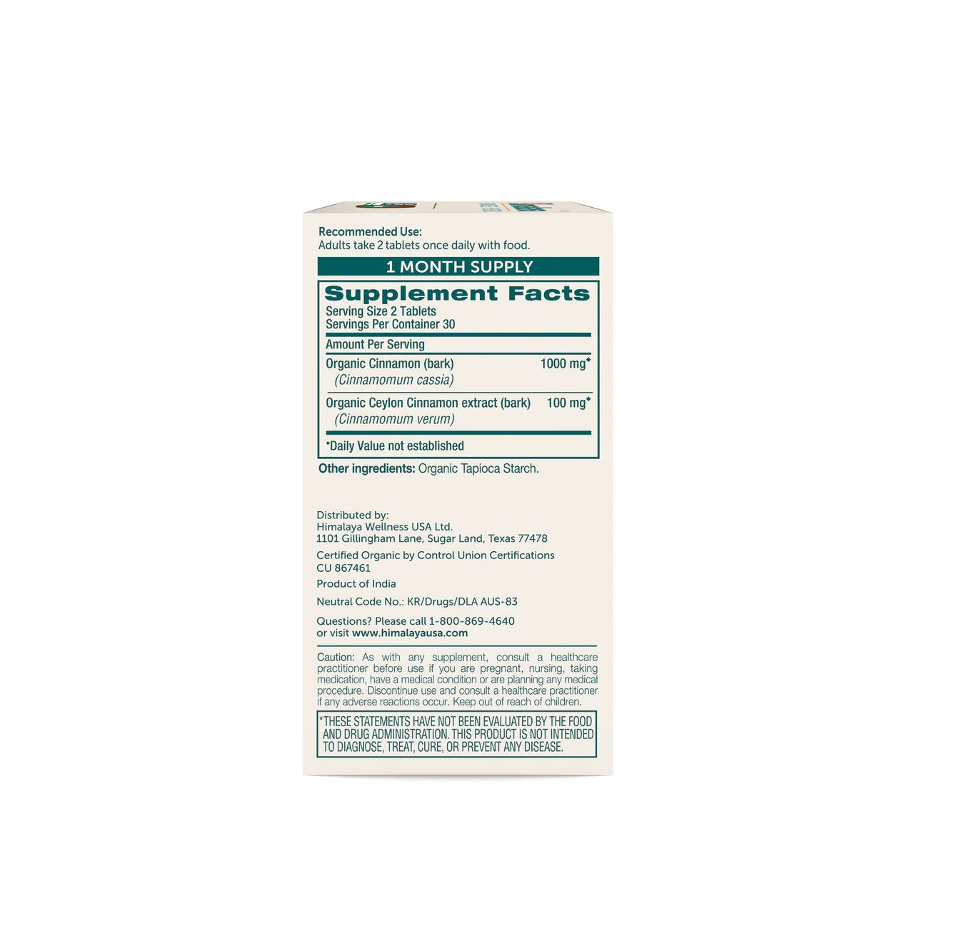 Himalaya Organic Cinnamon is a trusted daily supplement for glycemicsupport providing 1000 mg of Organic Cinnamon bark and 100 mg of Organic CeylonCinnamon extract in 2 plant-based tablets per day. Combining Cassia Cinnamon and CeylonCinnamon, this high-strength supplement offers antioxidant support for daily wellness, isproduced in a cGMP certified facility. Embrace one of history's most famous spices and makeHimalaya Organic Cinnamon your first choice for supporting your daily wellness.