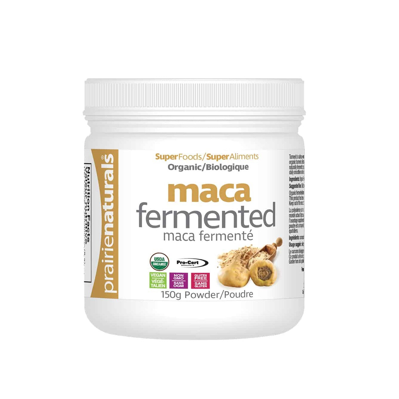 The peoples of the central Andes attribute their ability to work vigorously at high altitudes and their renowned strength and vitality to eating Maca. Maca (Lepidium meyenii) is an edible, parsnip-like tuber. Maca has often been touted as Peruvian ginseng, owing to the root’s traditional uses for fertility, libido, mental and physical energy, and conditions of menopause, among others. Adaptogens, like Chinese ginseng and Peruvian Maca, are hailed for their ability to reduce the effects stress hormones can have on the body. Prairie Naturals Organic Maca is fermented to increase bioavailability of the nutrient dense root.