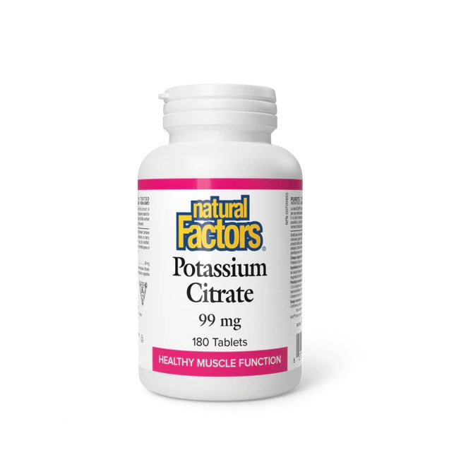 Potassium is one of the most important minerals in the body. It plays many important roles in the body such as controlling the body’s water balance, regulating nerve signals from the brain and spinal column to our muscles, and promoting healthy nerve and muscle function. It also aids in maintaining stable blood pressure, regular heart rhythm, and a healthy nervous system. The citrate form of potassium is well absorbed and well tolerated by the digestive system, making Natural Factors Potassium Citrate a great choice for individuals with digestive sensitivities.