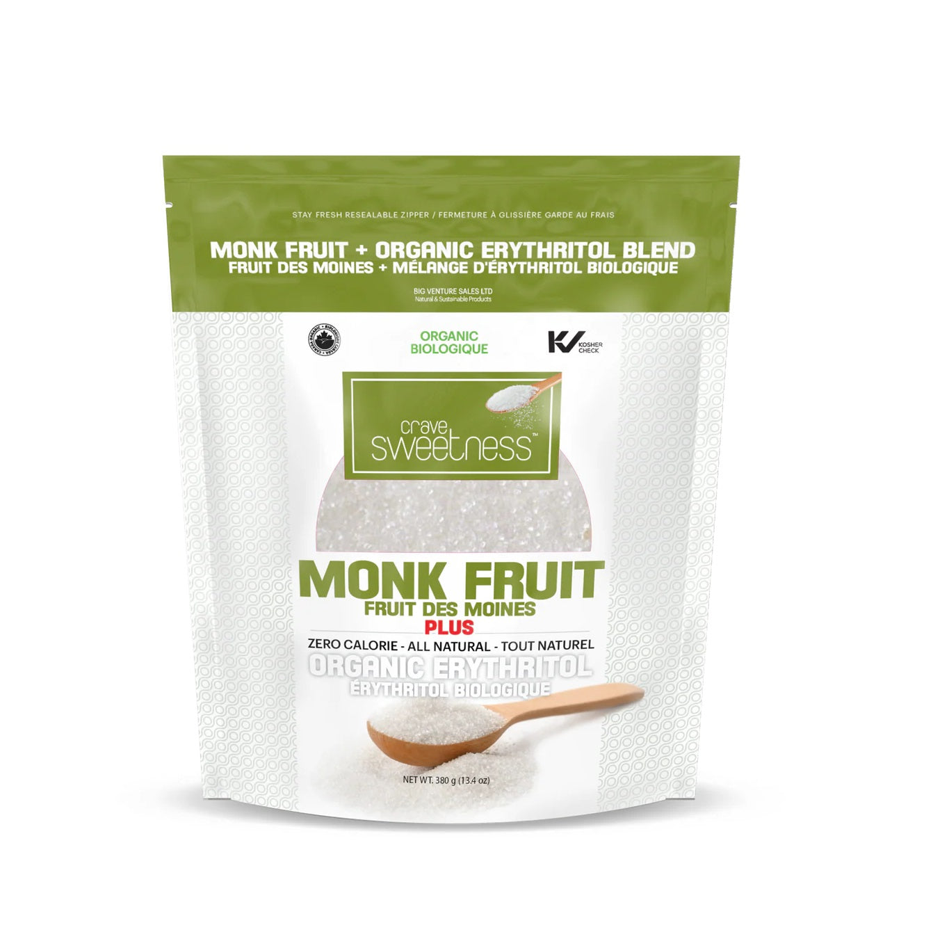 Monk fruit blended with erythritol makes the perfect 1 to 1 sugar replacement. (1 cup of Monk Fruit & Erythritol equals 1 cup of sugar in sweetness). 100% organic.