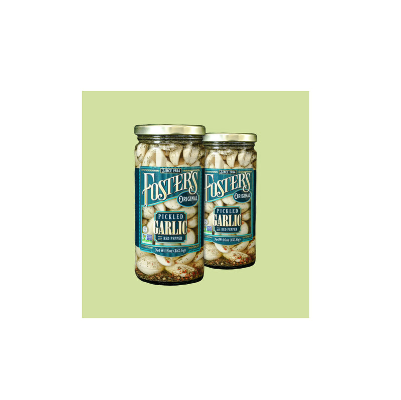 Crisp, slightly sour, and with a hint of tangy and spicy flavor notes. Foster’s Pickled Garlic with Red Pepper packs a punch with a garlicky kick that will spice up many meal dishes. Favorite of Korean cuisine, pickled garlic is the perfect match for grilled meats in soy sauce, and sweet potato noodle or udon noodle meals, or just an added zing to a fresh salad. For a twist on everyday recipes, mash with potatoes and olive oil, add to Mediterranean stews to enhance sweet and spice, or serve with cheese canapes.