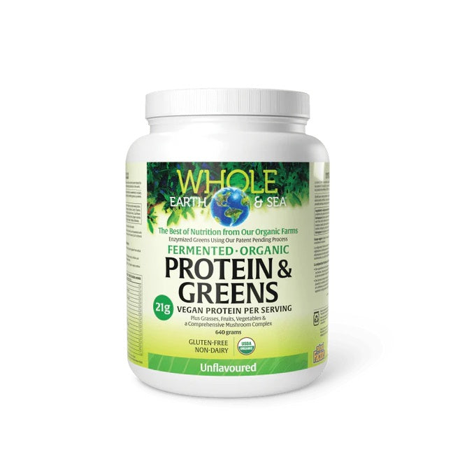 Ingredients: Organic Protein Blend (Fermented pea protein, Fermented brown rice protein, Organic pumpkin seed protein, Organic quinoa), 8 (Alfalfa, Barley grass, Blueberry, Cranberry, Carrot, Cilantro, Parsley, Artichoke, Black radish, Kale, Celery, Beet, Tomato, Broccoli, Red radish, Cabbage, Upland cress, Cauliflower, Arugula, Water cress, Basil, Peppers, Swiss chard, Spearmint, Dandelion, Wheat grass), Organic spirulina, Organic acerola cherry, Organic apple pectin, Organic stevia extract, Organic Mushroom Blend (Cordyceps, Reishi, Shiitake, Maitake). |