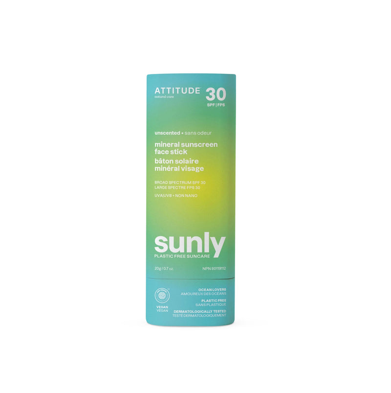 Sunly protects your skin. ATTITUDE™ SPF 30 face sunscreen stick is formulated with non-nano zinc oxide to limit our impact on the oceans. This mineral filter provides broad spectrum protection against UVA and UVB rays. Practical and environmentally friendly, this face sunscreen comes in a biodegradable cardboard tube and applies easily without leaving white traces. Its EWG VERIFIED™, vegan and dermatologically tested formula lets you enjoy outdoor activities with peace of mind!