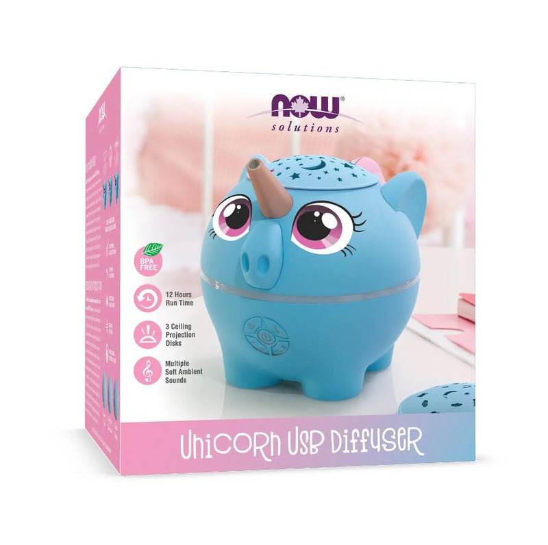 NOW® Solutions Unicorn USB Diffuser is made with recycled plastic and uses high frequency ultrasonic technology that vibrates water inside the unit into an ultra-fine mist, which helps to maintain essential oil integrity and holistic properties. When your favourite essential oils are added, they are immediately dispersed into the air, providing immediate healthful benefits while helping to ionize the air.